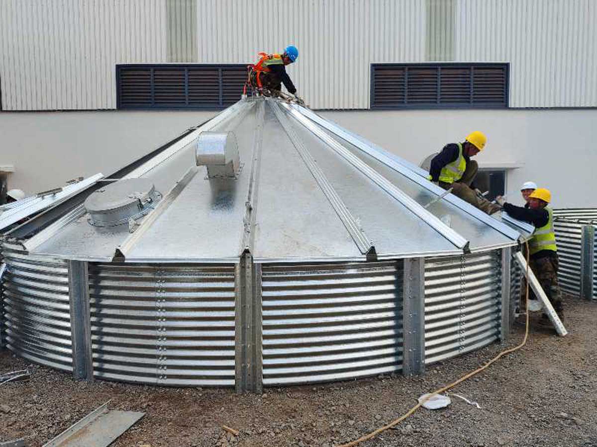 The silo roof panels can be made of magnesium-aluminum-zinc coated steel with a sealed interlocking structure for better corrosion resistance and sealing performance.