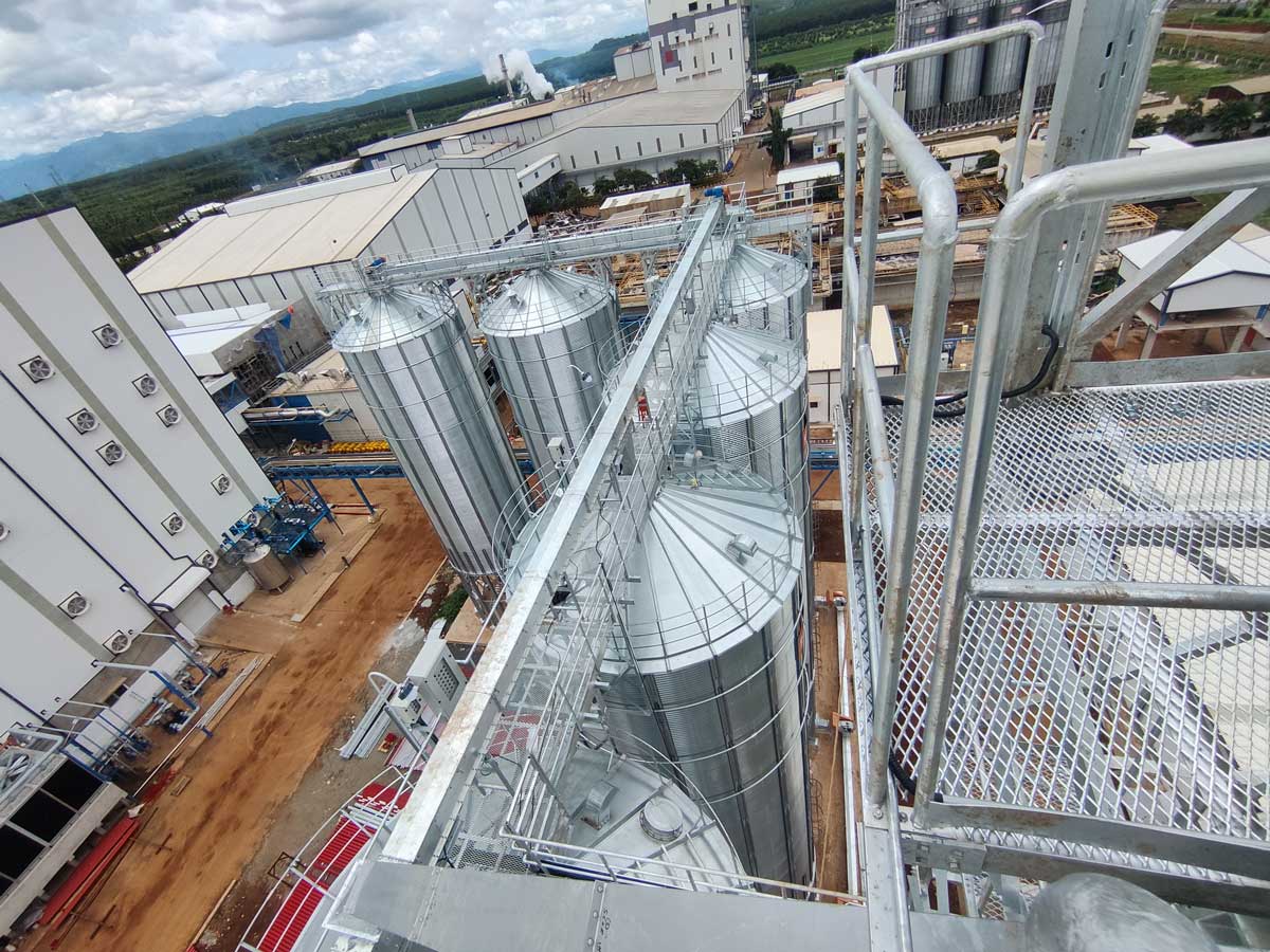 The silo roof features both natural and mechanical ventilation openings, effectively removing accumulated heat and preventing changes in material quality due to high temperatures.