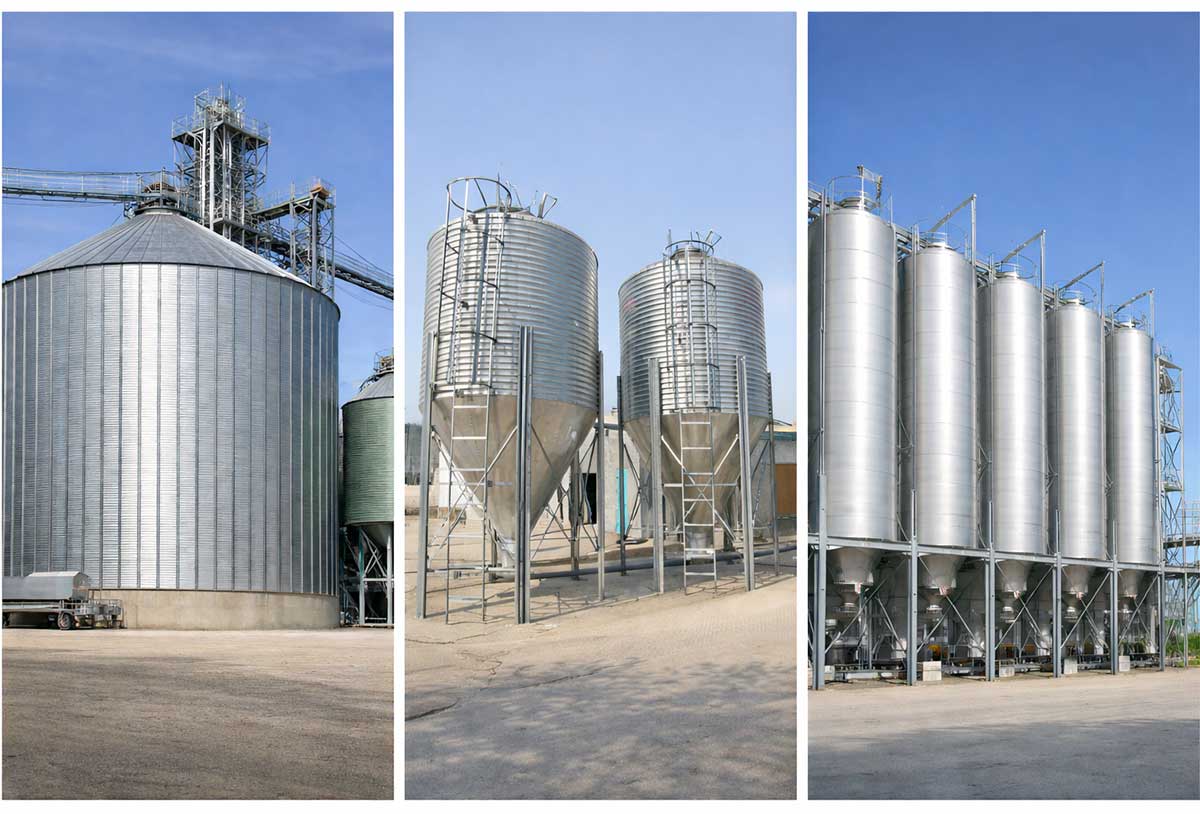Steel silos can first be divided into two major categories based on stored material: grain steel silos and industrial steel silos. They differ in design priorities and selection criteria.