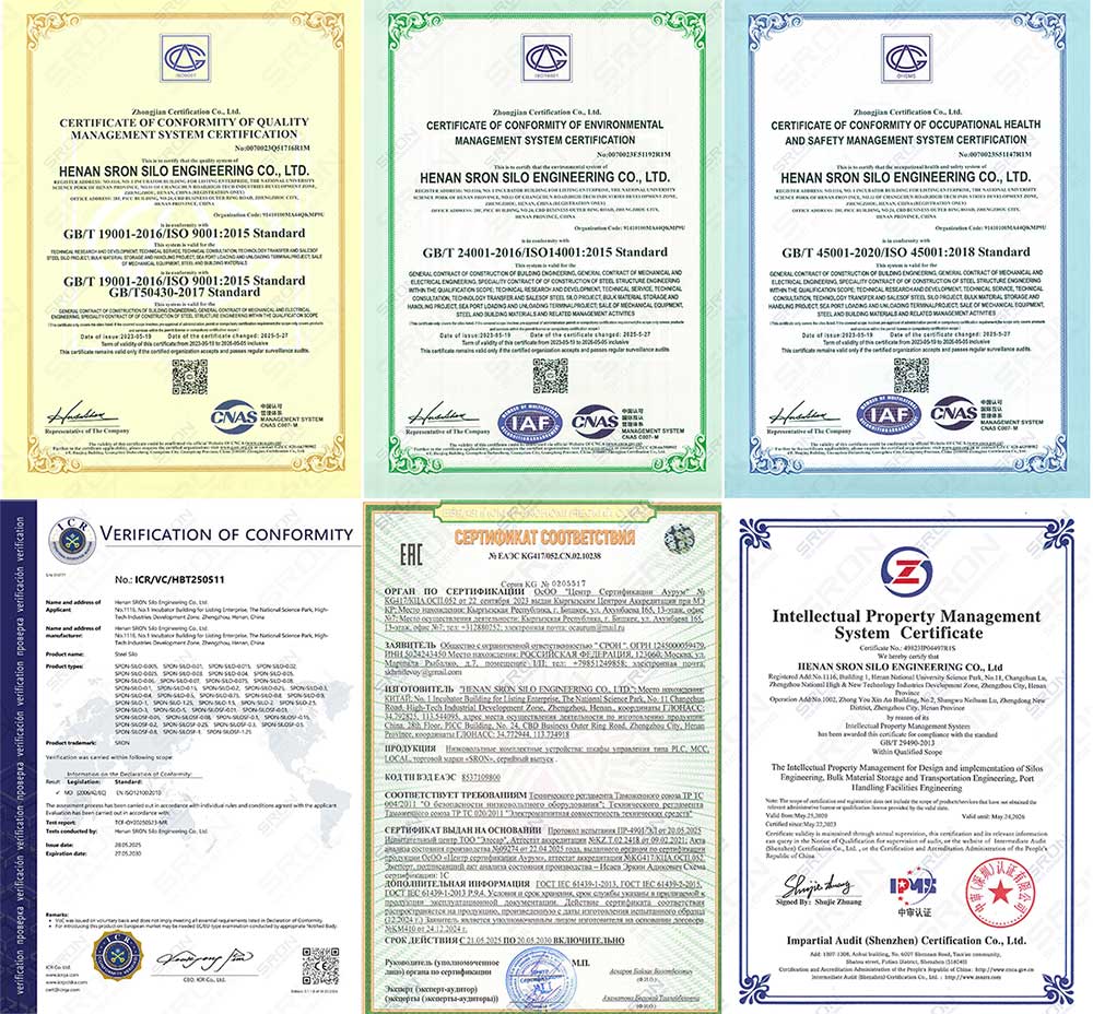 verify the manufacturer’s compliance with international standards. A reliable supplier must hold ISO 9001 Quality Management System certification to ensure process consistency. For global projects, look for CE Certification (specifically EN 1090 for steel structures) and a willingness to undergo Third-Party Inspections (e.g., SGS, BV, TUV). These credentials are the strongest proof of a supplier's manufacturing capability and guarantee the structural safety of your silo.