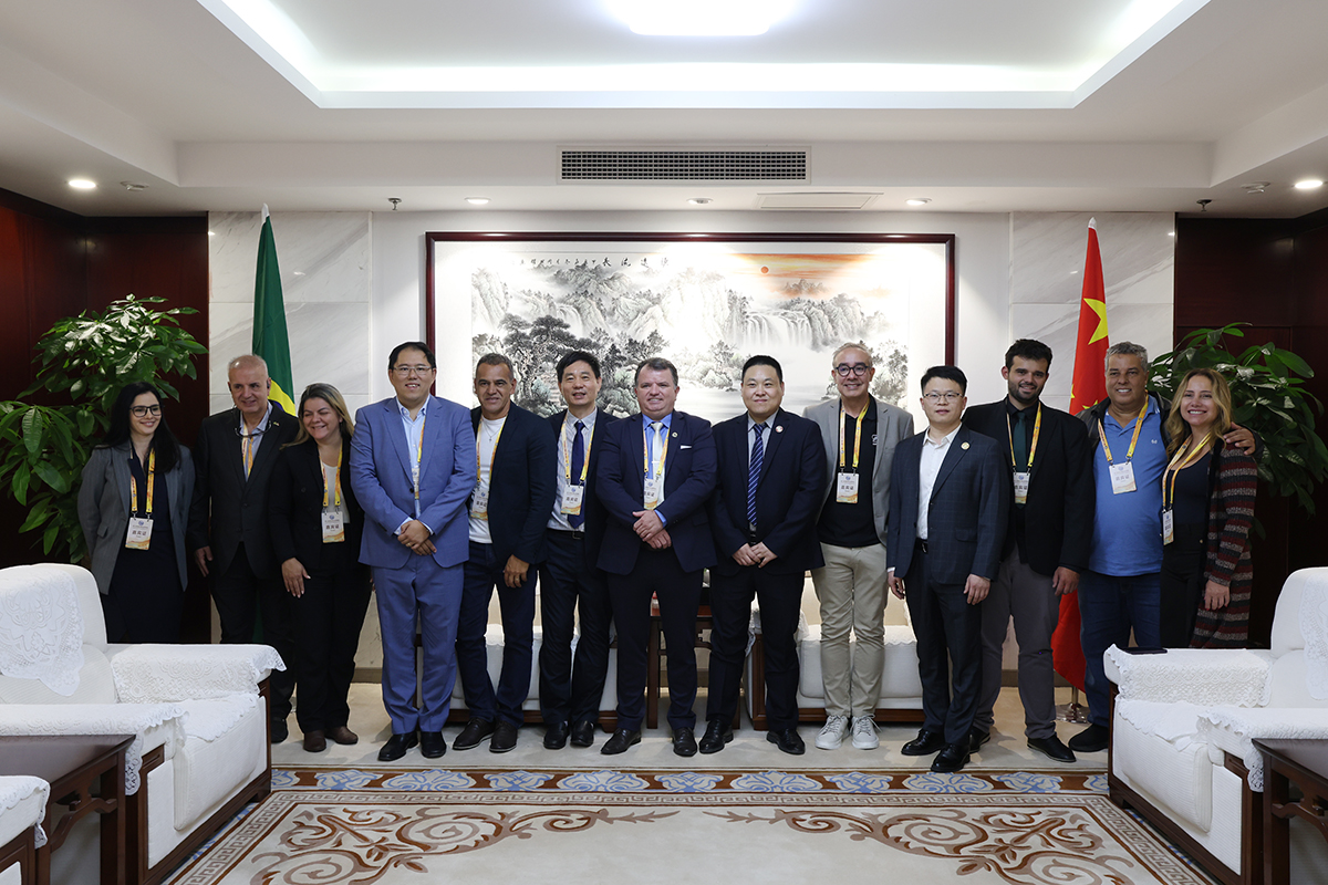 On November 3, 2025, following the opening ceremony of the 18th China-Latin America Business Summit, a delegation led by Daniel Reis, President of the Central West Cities Association (AMMECO) of Minas Gerais, Brazil, visited SRON for exchanges. The two sides conducted in-depth discussions on the construction of storage and transportation infrastructure in the fields of agriculture and construction materials. Senior leaders and relevant department heads of SRON received the delegation.